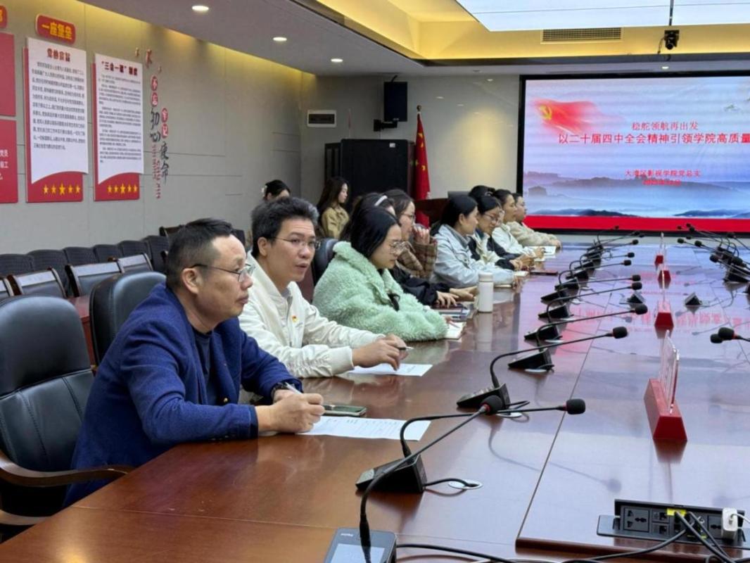 2025年12月25日,伟的国际1946bv官网党总支理论学习中心组在传媒大楼202会议室召开专题学习会,深入学习领会党的二十届四中全会精神。会议由党总支书记王日清主持,理论学习中心组成员、各党支部书记、教师党员代表参加学习。