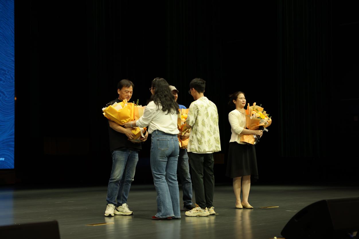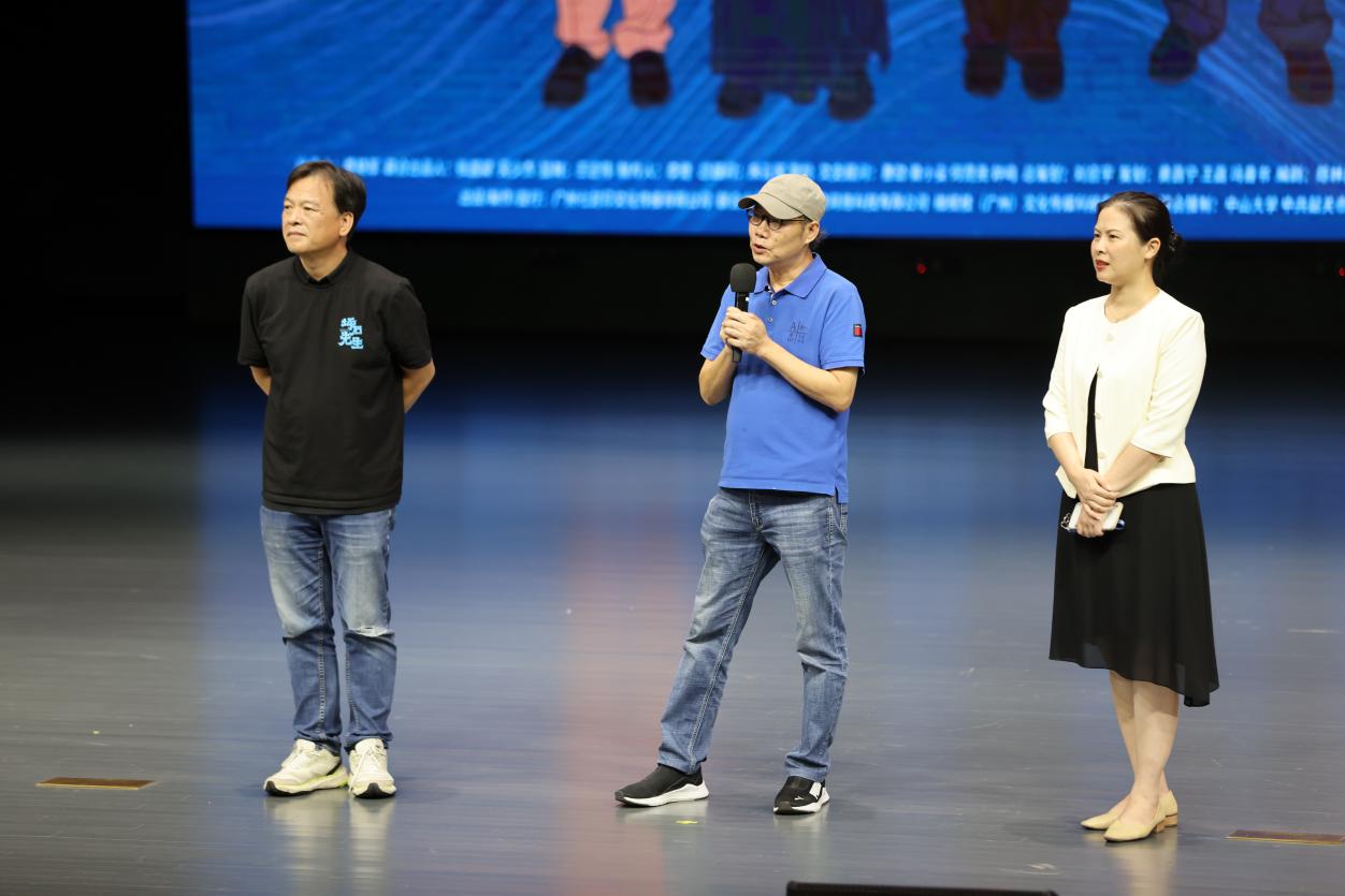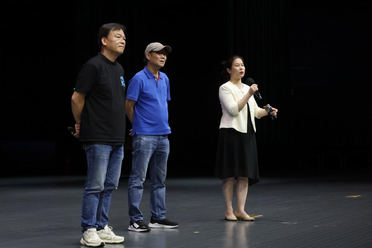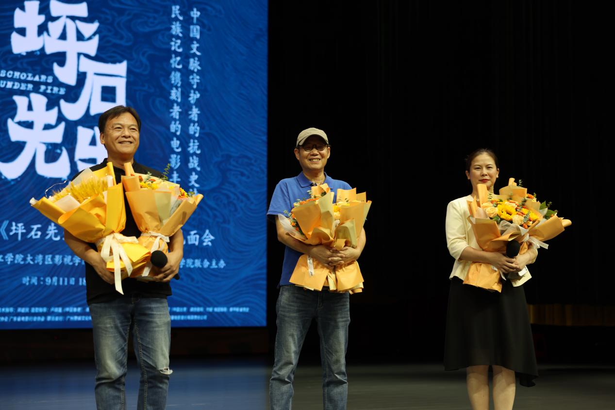 影片放映结束后,电影导演甘小二,艺术指导李宁,制片人李竞等主创人员走到台前,与师生互动交流。师生们积极提问,主创人员耐心解答,分享了影片创作背后的故事与感悟。导演甘小二详细介绍了影片的创作初衷与拍摄过程,强调了影片对抗战时期教育家守护文脉的贡献,以及对华南教育史宣传的重要意义。艺术指导李宁分享了影片在美术设计与造型创作中的理念与实践,展现了影片在视觉呈现上的独特魅力。制片人李竞则从制片角度,讲述了影片从筹备到上映的艰辛历程,以及影片在社会与文化层面的影响力。