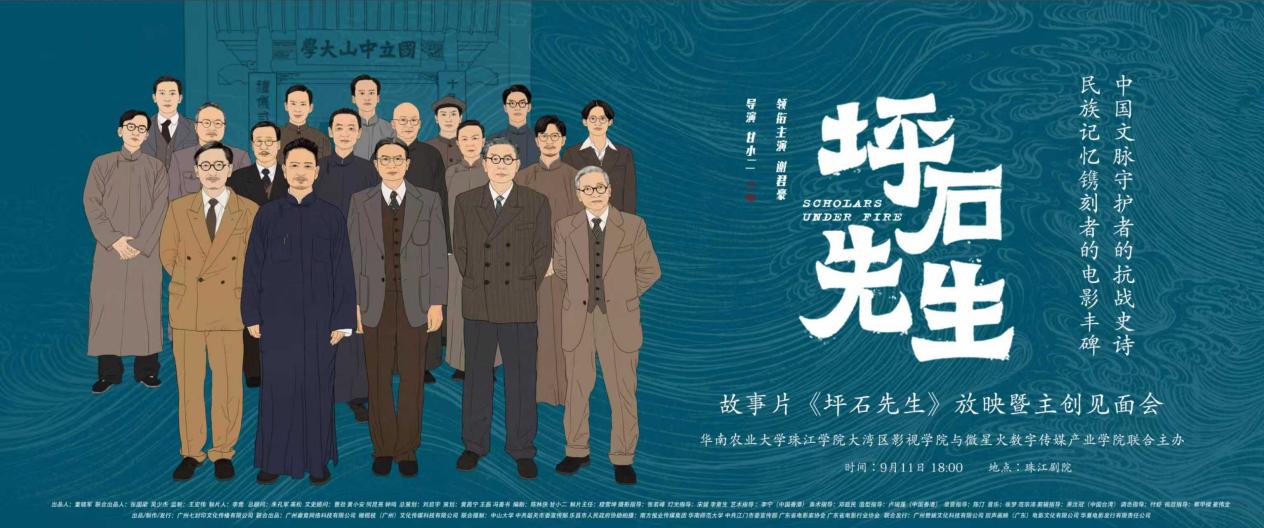 电影《坪石先生》以独特的视角,聚焦战时知识分子群体,再现了中大师生在烽火中坚守教育一线、延续岭南学术命脉的感人历程。影片中,黄际遇先生救学生、杜定友先生以命护书、黄友棣先生于轰炸中奏《杜鹃花》等场景令人动容,展现了中大中文系师生心怀家国大义、守护文脉赓续的生动群像。